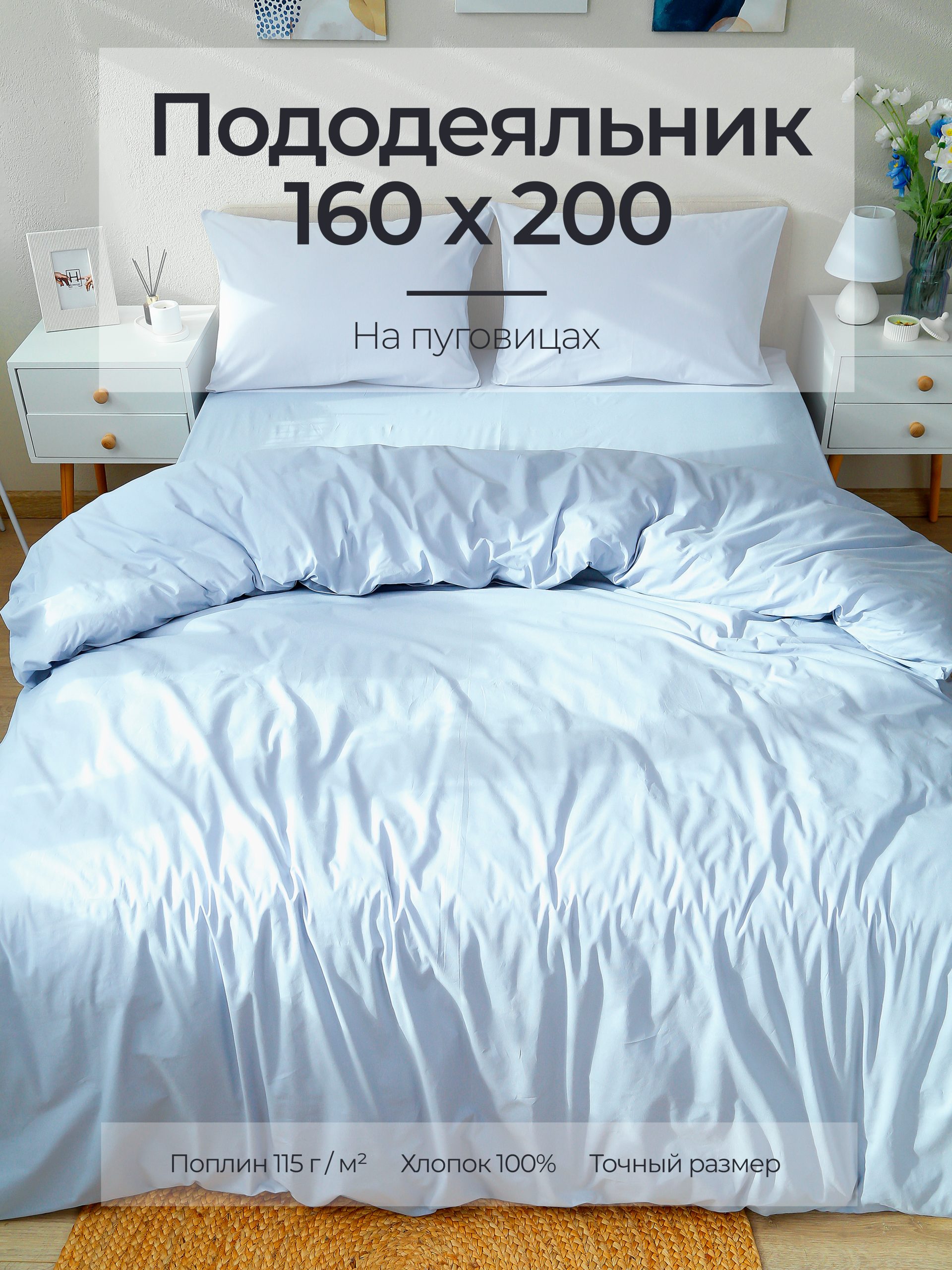 Натуральный пододеяльник 160х200 из гладкого поплина (100% хлопок) — лёгкий, дышащий и практичный. Идеален для повседневного использования: не электризуется, не вызывает раздражений, хорошо стирается и быстро сохнет.